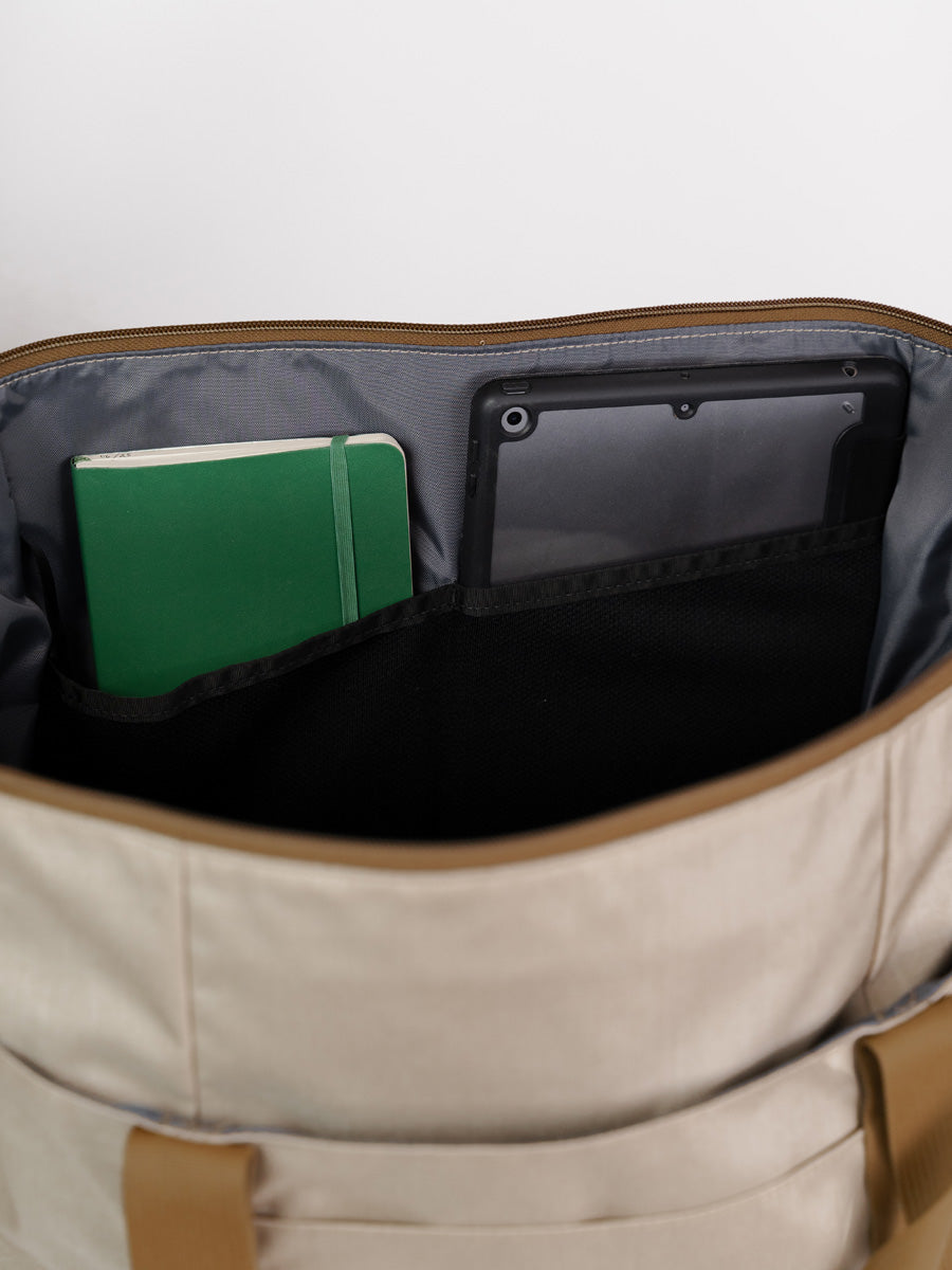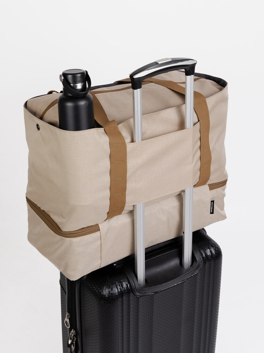 MILTHREAD Canyon 33L travel tote in silver dust on model