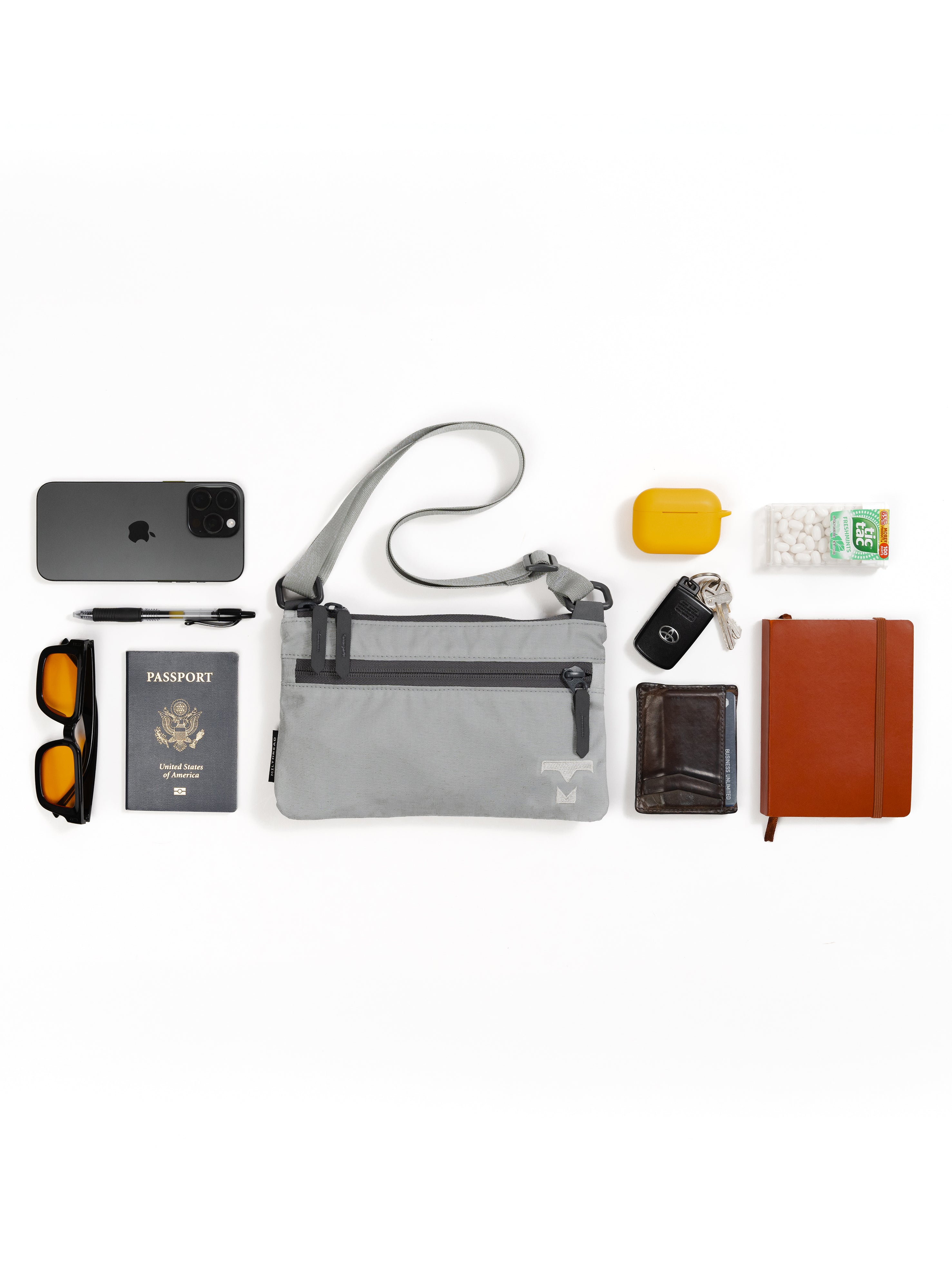 Compact, secure, and always ready—the Slash crossbody gag is your go-to minimalist solution for travel, concerts, and hands-free everyday carry. Designed with a slim profile that stays close to the body, this lightweight sling fits your essentials without the bulk. Two zip compartments and an easy-access snap pocket keep your phone, passport, and wallet organized and in reach. Made with durable, water-repellant fabric and adjustable webbing strap, it adapts from front-worn to back-slung with ease. Whether worn as a chest rig or traditional sling, it's built for stealth and movement—just like you.