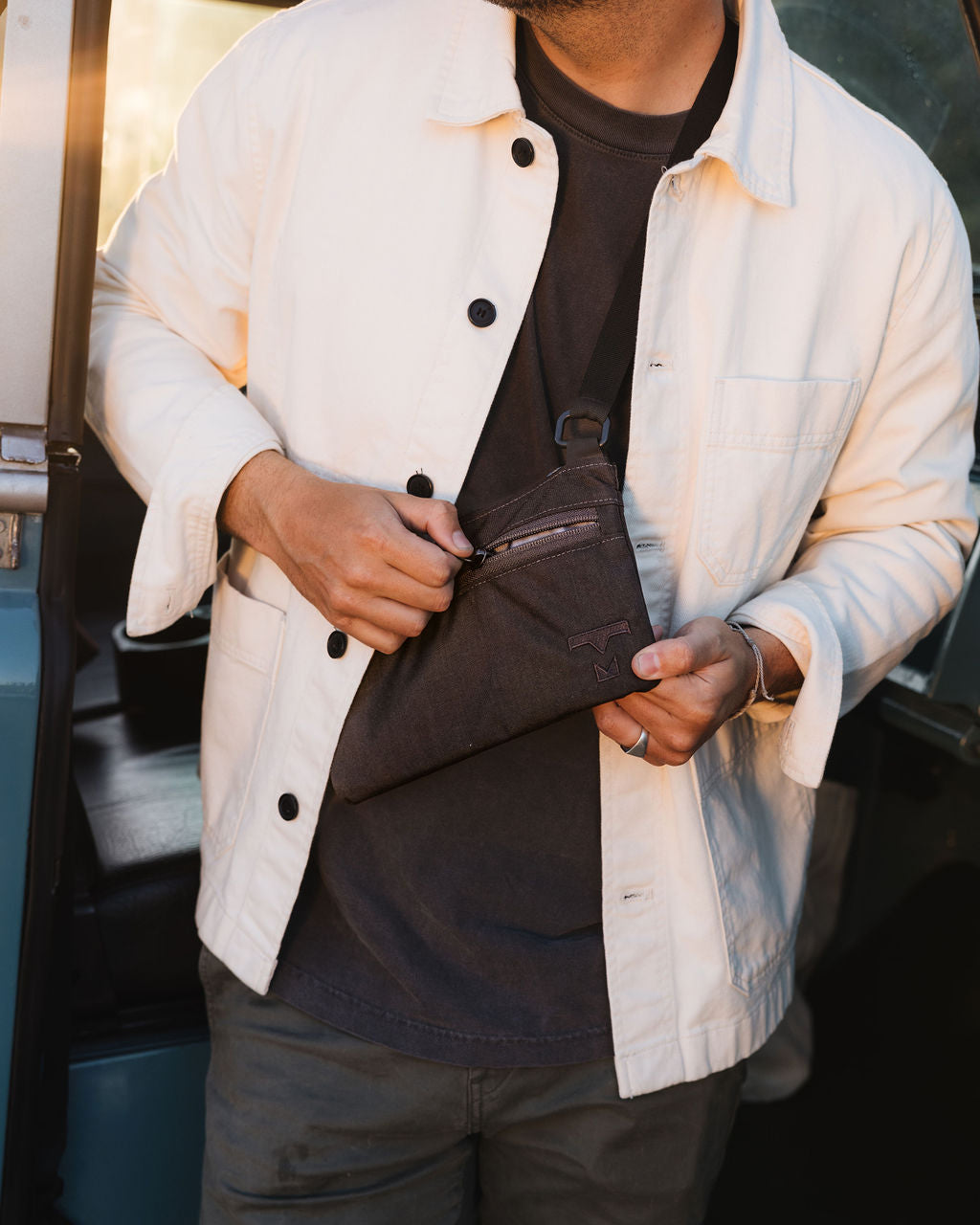 Featuring a front zip pocket and back snap button pocket—Slash keeps your hands free and your pockets light.