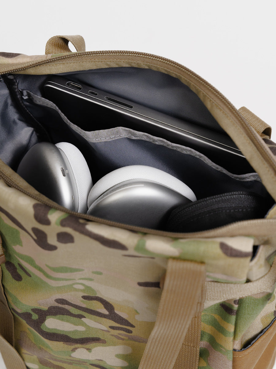 Drawing from military design inspiration, the Tango shopper tote is our take on a tough-yet-adaptable everyday carry. This carry-all tote blends minimalist aesthetics with rugged performance, made with military-grade construction and a water-repellant exterior for lasting durability.